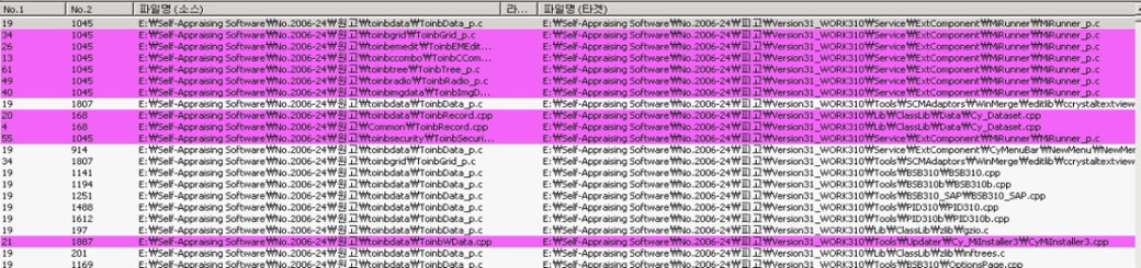 1 토큰화된 소스코드에 비교 알고리즘을 적용하여, 토큰단위, 라인단위, 파일단위의 유사성 고속 산출